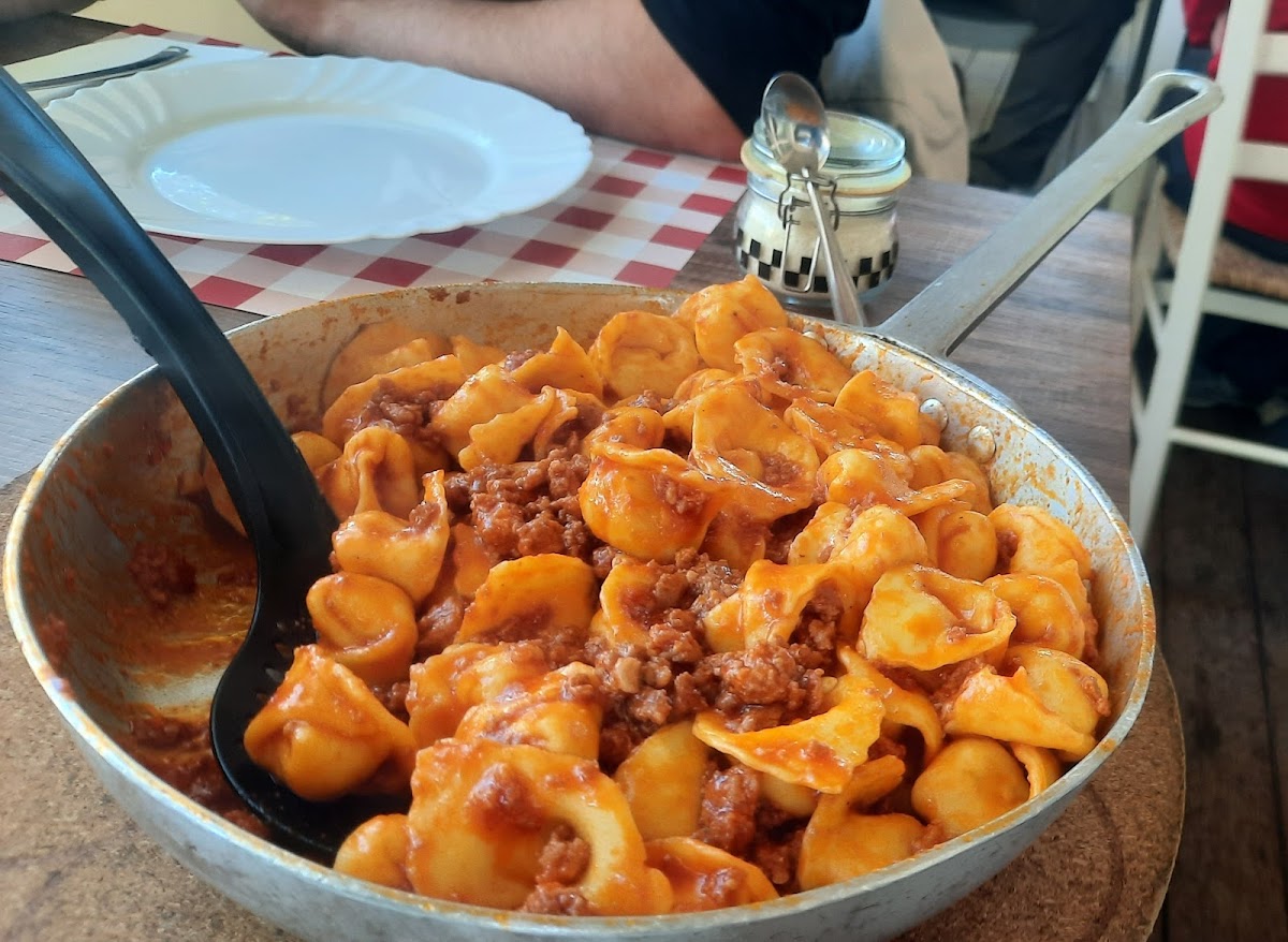 Su consiglio di un'amica, siamo stati a cena in questo ristorante. Abbiamo preso cappelletti per 3, una tagliata sale e rosmarino e una porzione di ciuffi di calamaro fritti con aceto balsamico. Ceppelletti veramente top e ci mangiavano 5 persone, la tagliata di carne argentina si scioglieva in bocca e la porzione di ciuffi di calamari era buona e abbondante. Il tutto con acqua, mezzo litro di vino e caffè. Abbiamo speso 93€ e sono stati spesi molto ben. Personale gentile e attento al cliente. Ci torneremo.